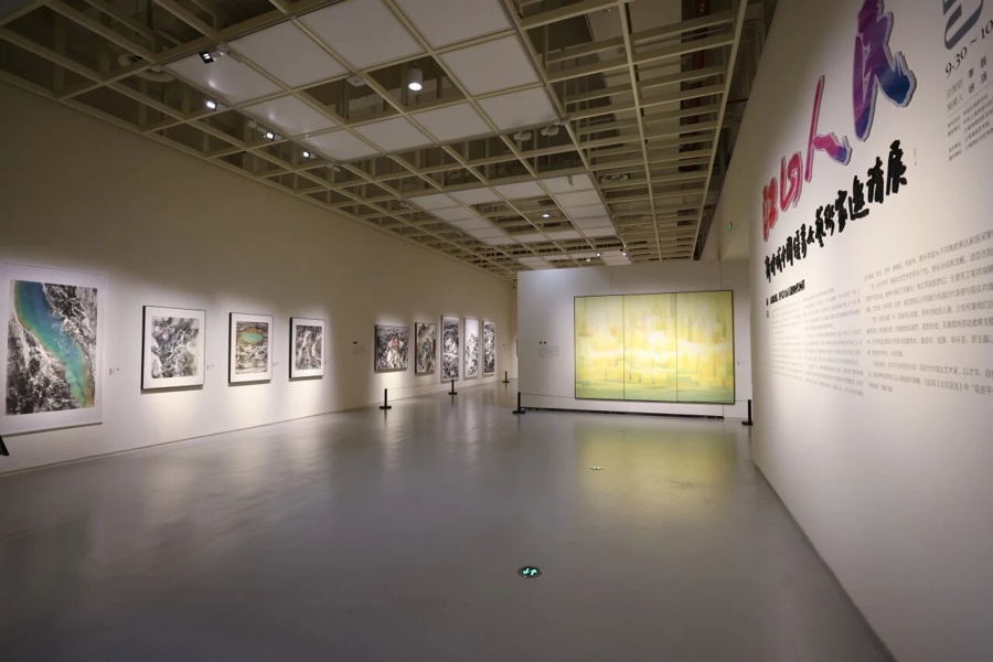 在“绘:诗意江山”中,何韵兰探索水墨与综合材料,描绘《洪荒之力》《生命之源》;张雷平融合线条与墨韵,刚柔并济;傅益瑶以海外视角再现唐诗宋词中的江山;胡明哲的岩彩肃穆纯净;山丹的版画融合自然与想象;张弛以南极创作为山水画注入新意;李江峰、刘丽萍、孙肖嘉、毛冬华、刘锐、周胤辰皆以不同方式颂咏祖国的大好山河。